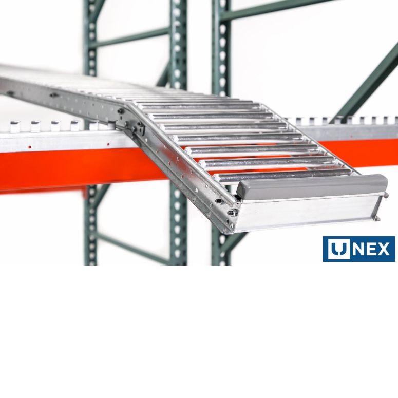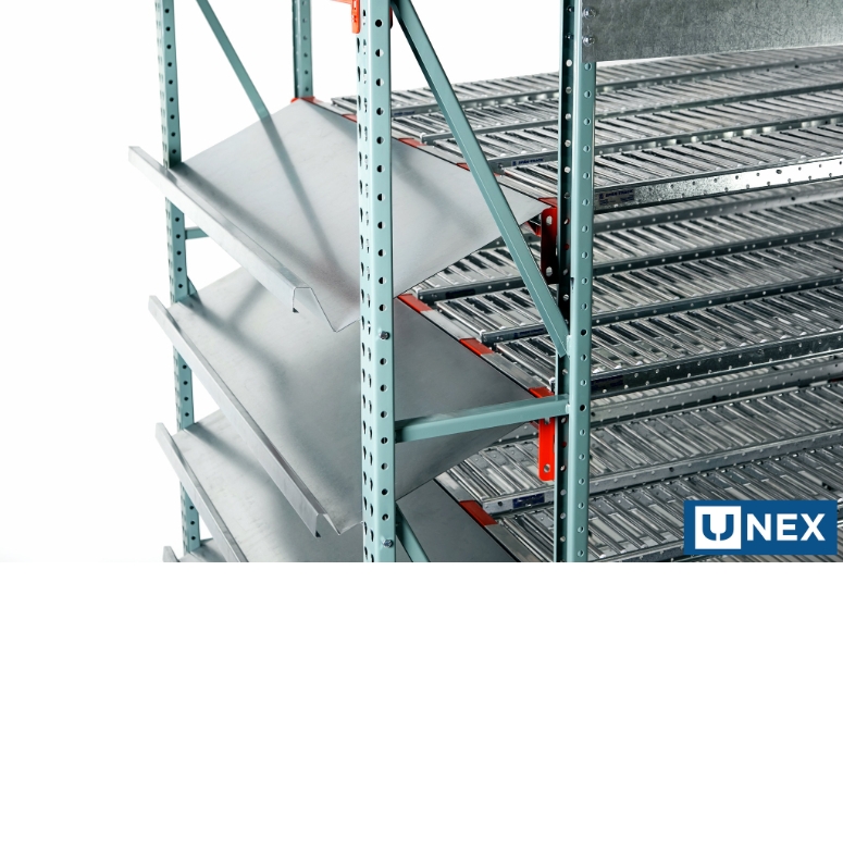 - Se puede añadir a una estantería de paletización nueva o existente, sin necesidad de estantes ni soportes intermedios.